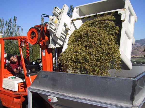 Chardonnay Grapes Going into Crusher